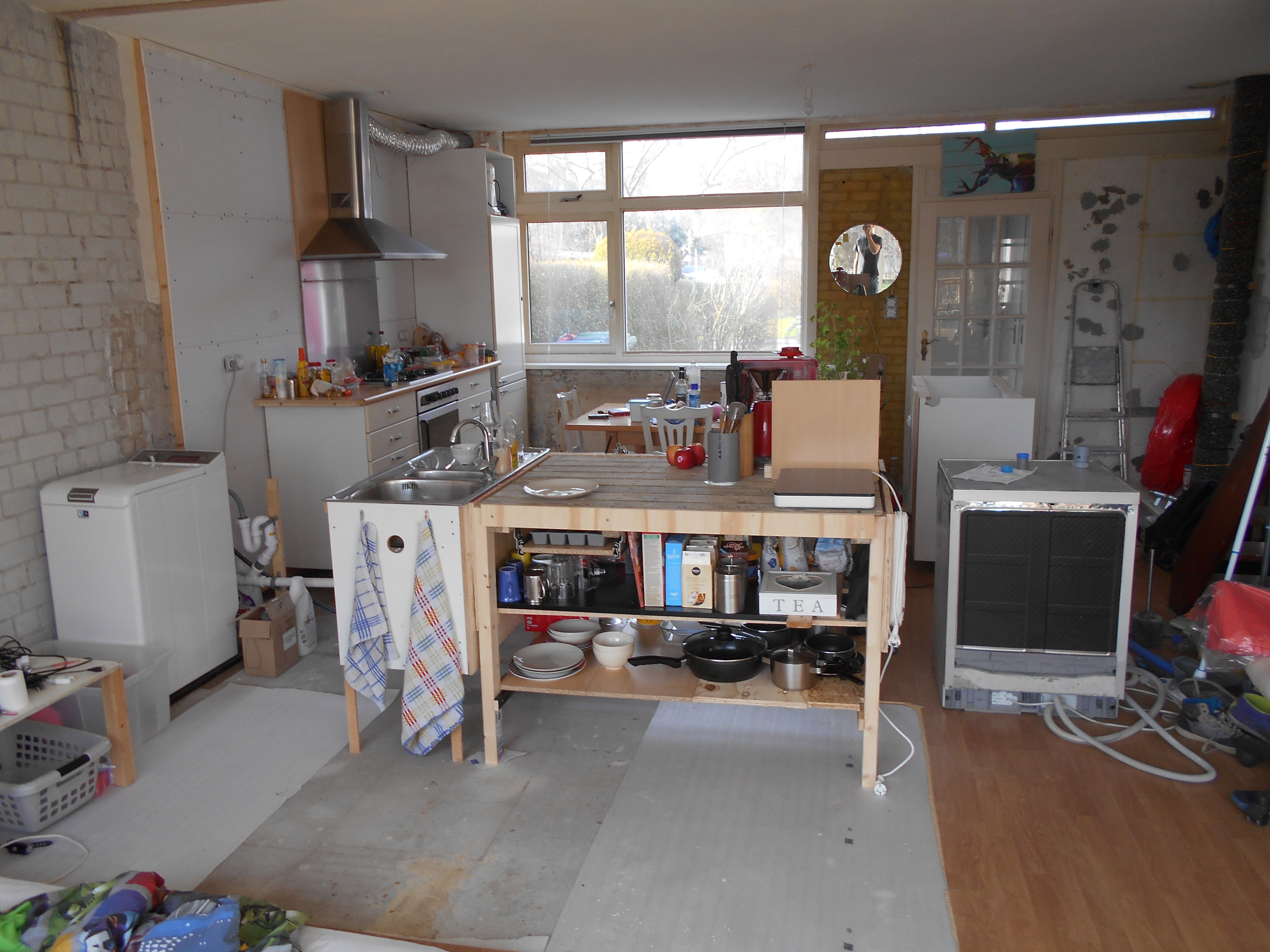 En nu nog even afzien voordat de kast er staat. We moeten straks natuurlijk wel ergens uit